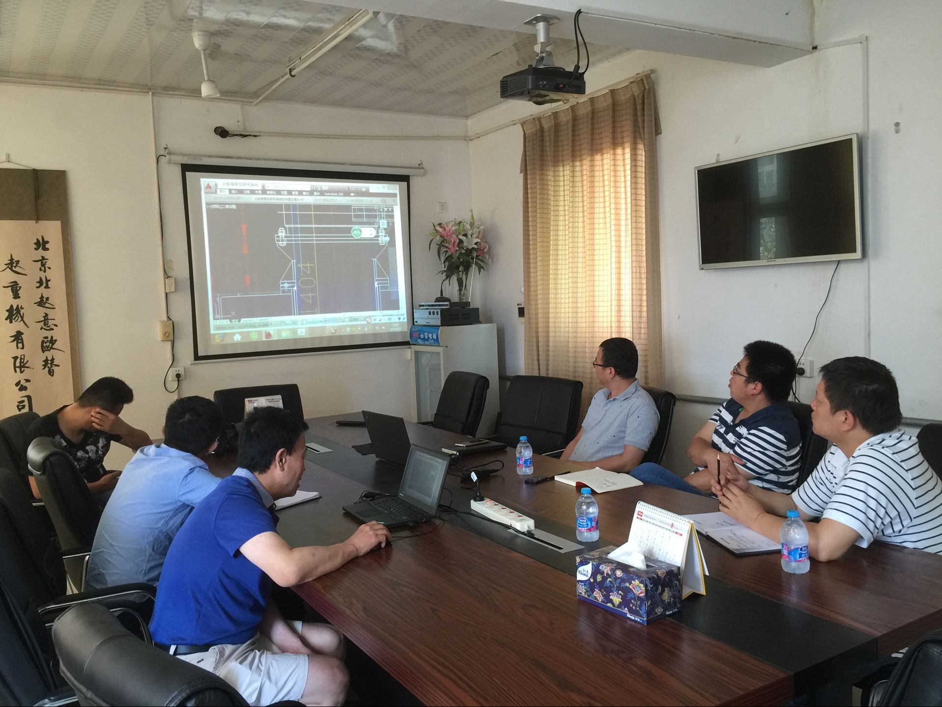 2016年7月7日北京航天石化技术装备工程有限公司到我公司就非标起重装备-火炬头高空卸吊装置合作项目进行技术交流。