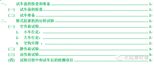 1. 将起重机开至立柱处,小车起升额定负荷,在桥架全长上来回运行3次,然后卸下负荷,将小车开至桥架端部。